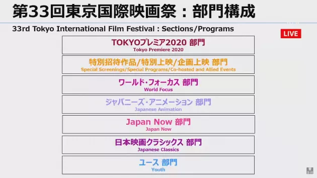 続いて映画祭の部門構成が紹介された。部門わけは下記の通り。
