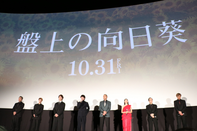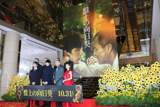 映画『盤上の向日葵』のジャパンプレミアが、10月16日、東京・丸の内ピカデリーで開催された。レッドカーペットには500本の向日葵が敷かれ、坂口健太郎、渡辺謙、佐々木蔵之介、土屋太鳳、高杉真宙、音尾琢真、小日向文世、熊澤尚人監督が登壇した。