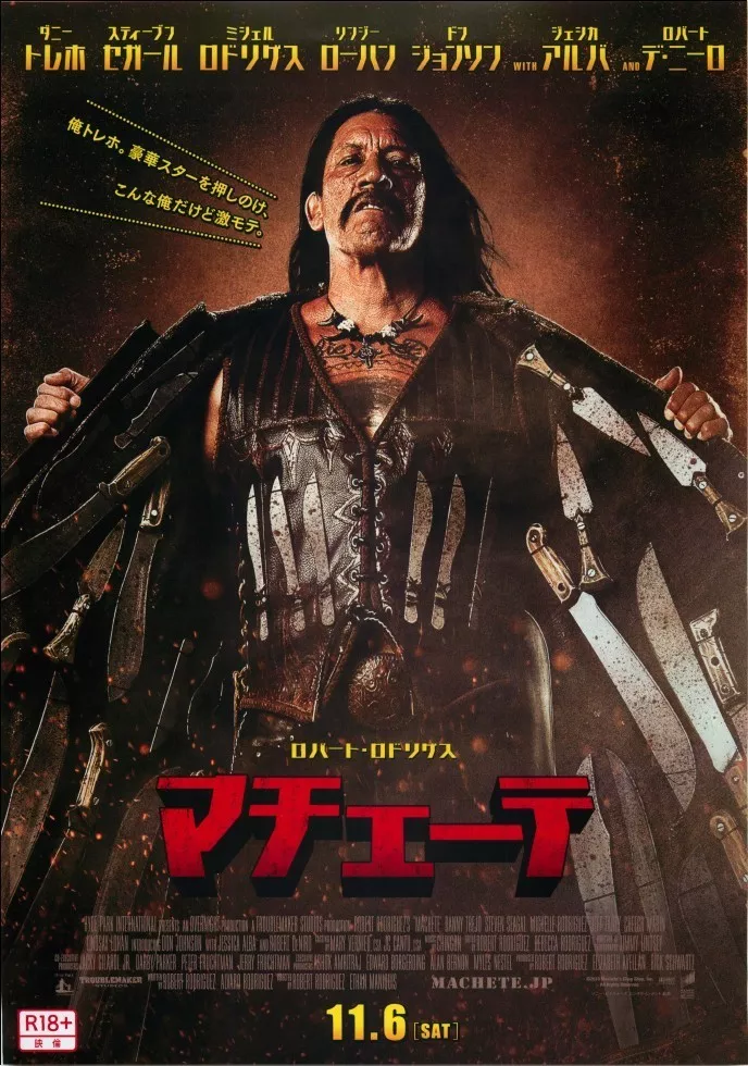 2007年にロバート・ロドリゲスとクエンティン・タランティーノが製作した2本立て映画『グラインドハウス』のフェイクトレーラーから生まれたキャラクターがまさかの映画化を果たしたのが本作『マチェーテ』です。