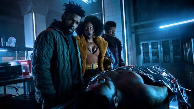 本作は素人探偵ものの要素もあって、『アンダー・ザ・シルバーレイク』のようにどこに向かうのかよく分からない不思議なストーリーになっている。ところがキャストのほとんどは黒人、しかも主人公らはヤクの売人、ポン引き、売春婦と黒人のマイナスなステレオタイプを反映したキャラクターで、黒人をターゲットにしたブラックスプロイテーション映画のような作りになっている。変な映画にもかかわらずキャストは意外に豪華で、『スター・ウォーズ』シークエル3部作のジョン・ボイエガがフォンテーンを、最近MCU組になり『マーベルズ』にも出演するテヨナ・パリスがヨーヨーを、そしてご存じジェイミー・フォックスがスリックを演じている。特にフォックスのKY演技は絶品だ。敵の白人ニクソンを演じているのは、やはりご存じキーファー・サザーランド。
