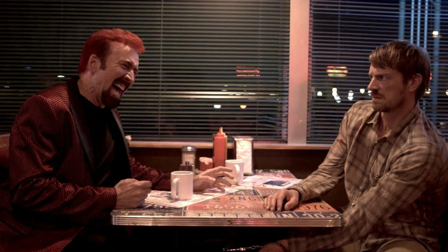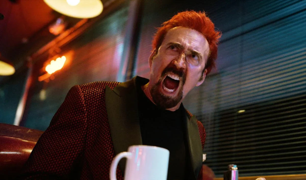 「謎の男」と呼ぶのは面倒なので、ここではいっそ「ケイジ」と呼んでおく。それだけ、この謎の男は我々が求めるケイジを体現しすぎている。なぜだか彼が燃えたぎらせている怒りの炎の具現化なのか、珍しい赤髪での登場だがこれも非常にキマっている。ケイジは、銃をちらつかせながらデイビッドの命乞いを「ありきたり」と切って捨てる悪魔のような男で、家族を想う普通のデイビッドのことが理解できないらしい。ベラベラと本当なのか嘘なのか分からないエピソードをまくし立てては、デイビッドと観客を混乱させる(『ダークナイト』のジョーカーを思い出した。ケイジ自身はスーパーマンを演じるはずだったのだが)。全編にわたってケイジ本人のお家芸であるブチギレ演技が炸裂しており、そのせいで時々スリラーの枠をはみ出してコメディになりかけている(もうなっている?)が、そのスリリングさがまさにケイジらしくてたまらない。