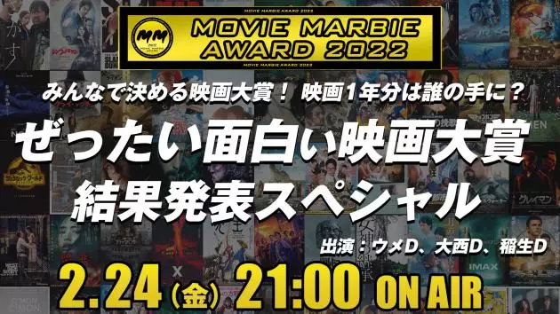 「ムービーマービーアワード2022/ ぜったい面白い映画大賞」結果発表スペシャル放送決定!