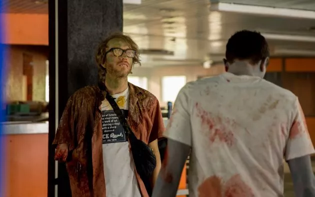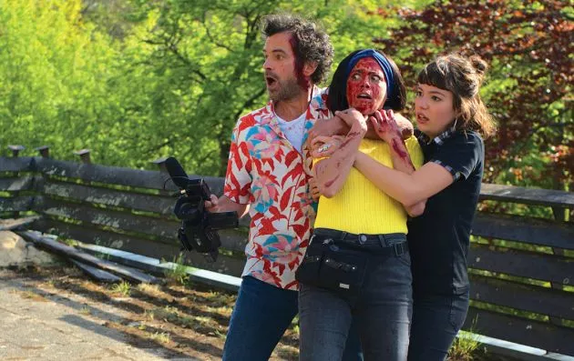 完成したポスターは、カメラを持ったアロハシャツ姿の監督(ロマン・デュリス)を中心に、斧をもった女優やソンビ姿の俳優らが血まみれ姿で集結。オリジナル版を踏襲したテイストで、ゾンビ映画らしいおどろおどろしさもありながら、ポップで軽やかな、明るいイメージに仕上がっている。