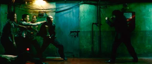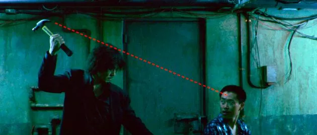 当時、多くの映画ファンを驚愕させた、主人公オ・デスがハンマーを振り上げ、数十人のヤクザを相手に死闘を繰り広げる姿を、約3分の横移動長回しワンカットで撮影した場面の前半部分。今もなお映画やゲームなど、様々な映像の世界に影響を与えている伝説的なシーンだ。