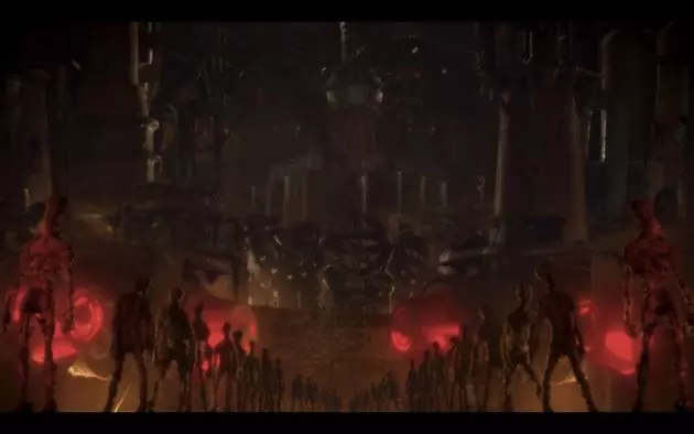 あわせて、新場面写真7点が解禁!衝撃な光景を目撃したかのような見開かれた血眼や、鉄鋼のマスクをつけて殴り合う凶暴な獣、電気椅子に並んで座らされる巨人たち(右下の足元にいる小さな人物が主人公のアサシン)、毒々しい色合いの空間でトランプに興じるノミたちなど、地底ディストピアに待つ多様な世界観を垣間見ることができる。