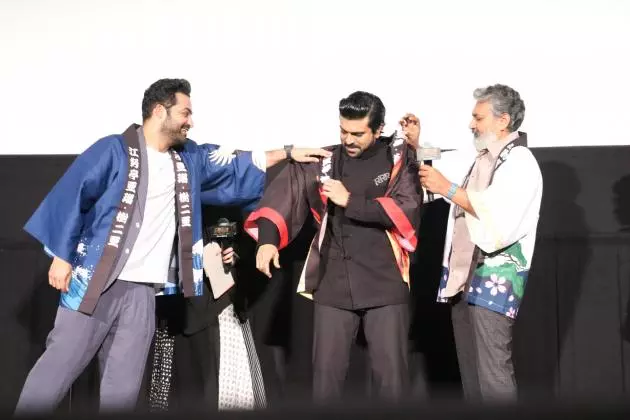 イベント終盤、来日の感謝を込めたサプライズプレゼントとして、「江努亭亜瑠・樹二亜(NTR Jr.)」「羅亜夢・茶蘭(ラーム・チャラン)」「羅射真羽璃(ラージャマウリ監督)」とそれぞれの名前が漢字でプリントされた法被とオリジナル手ぬぐいが手渡され、粋なプレゼントに対してラージャマウリ監督、NTR Jr.、ラーム・チャランも心からの笑顔で最大限のファンサービスで感謝の気持ちを表した。