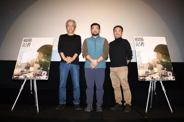 映画『戦場記者』の初日舞台挨拶が東京・角川シネマ有楽町で行われ、須賀川拓監督、ジャーナリストの青木理氏、村山祐介氏が登壇した。この日のためにロンドンから緊急帰国した須賀川監督は、「今日はありがうございます。こうして劇場に入ってみて、最初に頭に浮かんだのは、取材に応じてくれたウクライナの人たち、アフガニスタンの人たちです。これだけ沢山の方たちに観て頂けていますよと伝えたいです。」と感慨深げに挨拶した。