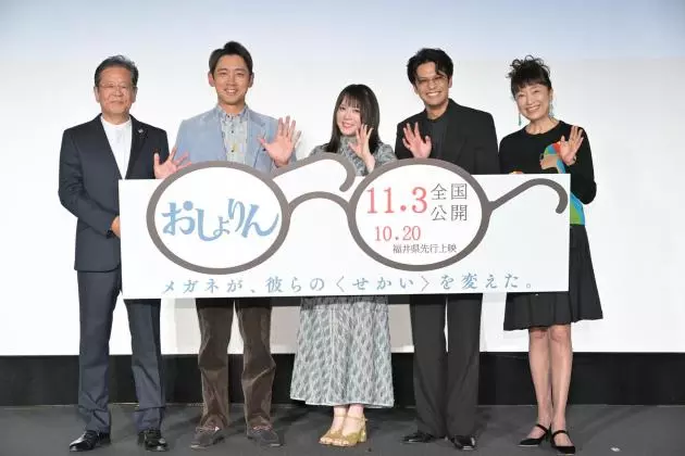 人生を懸けてメガネ作りに挑んだ人々の情熱と愛の物語を描いた映画『おしょりん』が、2023年10月20日(金)より福井県先行公開、11月3日(金・祝)より角川シネマ有楽町ほかにて全国公開となる。今回、本作の完成披露上映会が10月1日に都内映画館で実施され、北乃きい、森崎ウィン、かたせ梨乃、小泉孝太郎、そして児玉宜久監督が出席した。