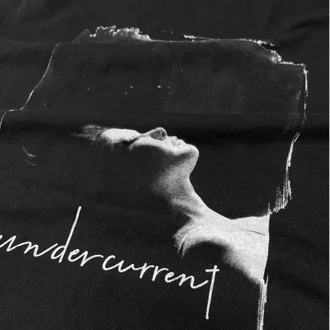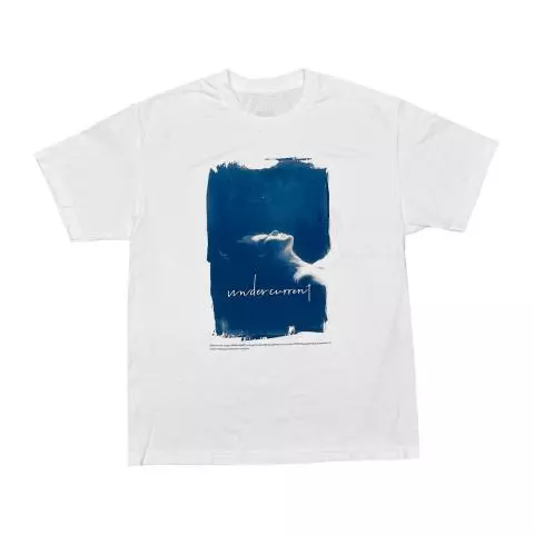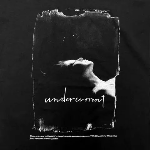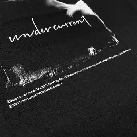 さらに、東京を拠点に T シャツを通した様々な活動で話題を呼んでいるカルト T シャツ集団[weber]とのコラボTシャツが映画公開日の 10 月 6 日(金)正午より発売することが決定!水に漂うかなえ(真木よう子)のヴィジュアルを「サイアノ」という特殊な写真技法を用いて再現した深いプルシアンブルーのヴィジュアルをフロントにシンプルに配置し、プリントはその写真の特徴を活かすために、3 版分解のシルクスクリーンプリントを採用。「嘘」がテーマの作品内容に合わせて相反する白と黒の「在りもの」ボディを使用し、コピーライトも入った 90s の雰囲気を意識した”Futuristic vintage/未来のヴィンテージ”のコンセプトに沿った仕上がり。映画『アンダーカレント』の世界に浸るにはぴったりなアイテムとなっている。