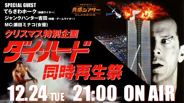 “熱量を共感する”ネット生放送「共感シアター」では、クリスマス特別企画として『ダイ・ハード』同時再生祭を12月24日(火)21時より開催!