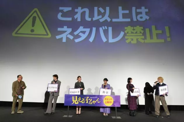 最後、原は「伏線などの仕掛けがたくさんあって、何度も観たくなる作品になっています。最初から最後まで楽しんでいただける作品です。ぜひ大切な方と楽しんでいただけたらと思います」とコメントし、中村監督は「いつも公開するとSNSを見ないようにするんですが、昨日我慢できなくて見たら、大絶賛!自分で言っていて恥ずかしいんですが、褒めてほしいところをしっかり褒めてくれて。キャストの皆さんも褒められていました。皆さん、ネタバレせずに口コミしてくださるのがとても上手。ぜひ2度、3度と楽しんでいただけたらと思います!」と締めくくった。フォトセッションでは、大量の幼児の霊“ツトムくん”のお面を掲げた観客とともに撮影し、イベントは幕を閉じた。