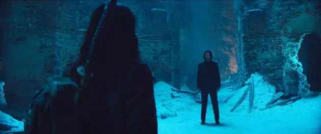 本予告では、亡き父の死の真相を追うイヴが、ジョン・ウィックばりのノンストップ・キリングアクションを繰り広げる様子が映し出される。ある暗殺任務で手がかりを掴んだ彼女は、かつて父を殺した教団の痕跡を追い、裏社会のタブーに足を踏み入れる。ウィンストン(イアン・マクシェーン)やシャロン(ランス・レディック)に助けを求めながら、賞金首の男パイン(ノーマン・リーダス)とも接触。やがて雪降るオーストリアの山中で、イヴの前に伝説の殺し屋ジョン・ウィックが現れる。「私を殺しに来たの?」と問いかけるイヴに対し、ウィックは何を選ぶのか――。火炎放射器と放水ホースが激突する“ほこたて”対決や、世界遺産ハルシュタットの高低差を活かした戦闘など、アクションも大幅に進化。小柄な体格を生かしたアナ・デ・アルマスのCQC(近接戦闘)アクションも注目ポイントとなっている。