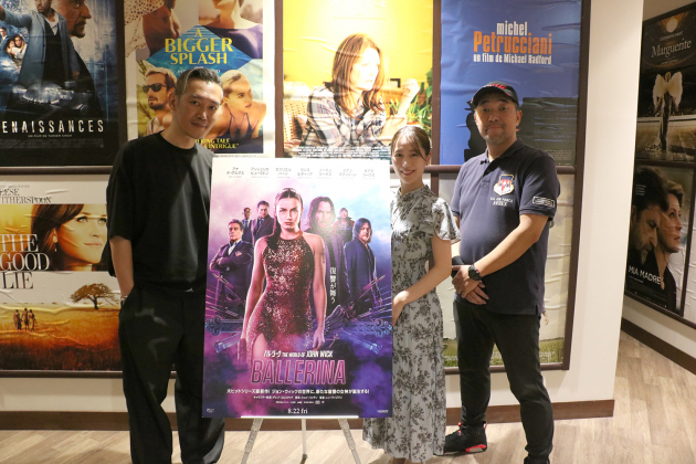 『ジョン・ウィック』シリーズから生まれた最新スピンオフ『バレリーナ:The World of John Wick』が8月22日(金)に公開される。これに先駆け、番組「共感シアター」とコラボした特別イベント《主席連合試写会》が8月11日(月・祝)に都内で開催。上映後には、ネタバレ全開の熱いトークショーが繰り広げられたため、本記事ではネタバレを避けつつ、その模様をダイジェストでお届けする。登壇したのは共感シアターの稲生Dと女優の瀬田ミナコ、そして映画ライターのてらさわホーク。笑いと熱気に包まれたイベントの様子を振り返る。