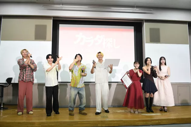 本シリーズの最大の魅力は、ただ怖いだけでなく「ホラー×青春」のコントラストが見事に融合している点にある。本作では、陸人(櫻井海音)たちが修学旅行先で訪れた遊園地で“カラダ探し”に巻き込まれることから、恐怖と同時に圧倒的な青春感も漂う。そんな作品を象徴するかのように、夏休み中にもかかわらず約500名の生徒たちが集まり〈学校プレミア〉イベントが開催された。