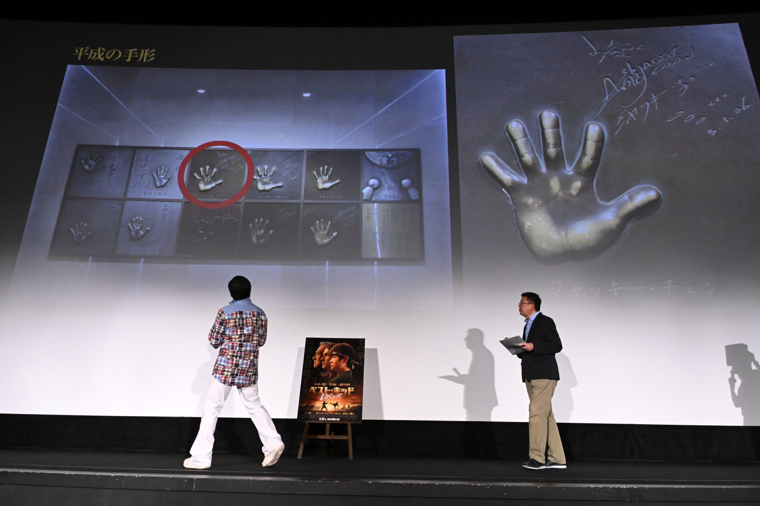 そして、舞台挨拶11回の記録を達成したジャッキーは、さらにもう1つの記録に挑戦することに。昭和55年『バトルクリーク・ブロー』での来日時に日比谷で手形イベントを実施し、平成に来日した際にも手形を残したことで、昭和・平成の2つの時代をまたいで刻印を残したスターであるジャッキー。そして今回、令和の時代にも新たな手形を刻むべく、特別に“カンフーの型”で挑戦することになった。