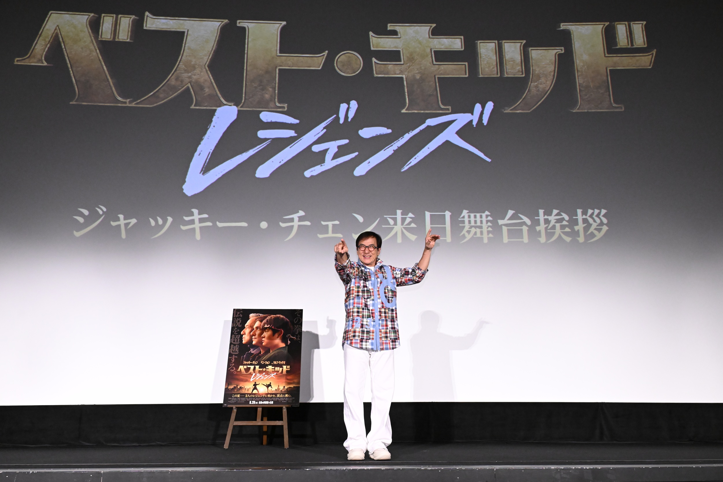 公式SNSからの質問コーナーでは、自身の“レジェンド的存在”について「チャップリン、黒澤明監督、スタローンやデ・ニーロなどたくさんいます」と回答。「アクションが受け入れられず諦めかけた時、『ロッキー』に励まされたこともある」と映画からの影響を語った。また自身の映画作りについて「残虐描写や下品な表現は入れない。世界中の子供たちが観られる作品にしたい。僕の作品には愛、平和、団結、環境保護を込めている」と信念を明かした。さらに、今までの舞台挨拶で歌を歌ったことにも触れ、ジャッキー自ら歌う日本語の曲「TOKYO SATURDAY NIGHT」を披露し、「結構歌上手でしょ?」との問いかけに会場からは大きな拍手が巻き起こった。