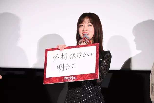 上映後の興奮冷めやらぬ会場内。客席後方扉に俳優陣&監督が現れると、会場のボルテージは一気に最高潮に。黄色い歓声と大きな拍手に包まれながら、主演の橋本環奈を筆頭に、登壇者がステージに勢揃いした。この日集まったお客様を前に、主人公・森崎明日香(もりさき・あすか)を演じた橋本は「昨日は大雨だったので映画館へ足を運ぶのは大変だったと思いますが、SNSでも見たよと言うコメントをたくさん届きました。ご鑑賞いただきありがとうございます。」と、素直に今の気持ちを語った。そして、念願だったという木村との共演については、「ずっとお会いしたかった方だったので、共演できて嬉しかったです。現場でも気さくに話しかけていただいて、とても良い経験になりました。」と本人を前に猛アピール。
