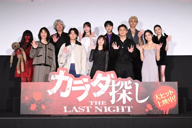 映画『カラダ探し THE LAST NIGHT』公開記念舞台挨拶が9月6日、丸の内ピカデリーで行われ、主演の橋本環奈をはじめ眞栄田郷敦、櫻井海音、安斉星来、鈴木福、本田真凜、吉田剛明、木村佳乃、那須ほほみ、そして羽住英一郎監督が登壇した。