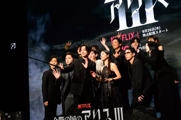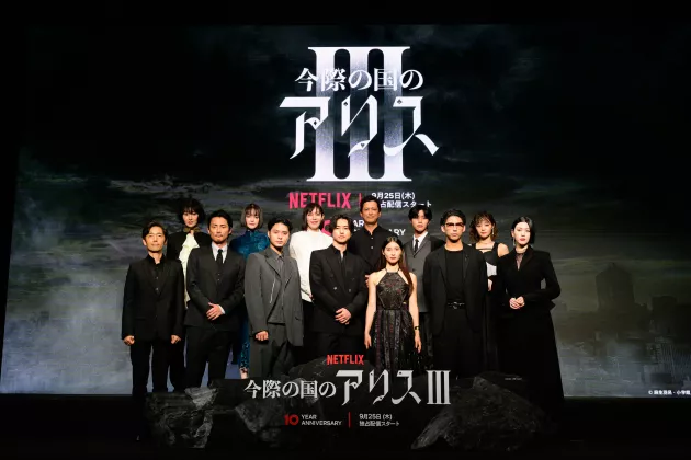 日本のみならず世界中で大きな人気を集めた「今際の国のアリス」。待望のシーズン3配信に先駆け、本作の聖地・渋谷で世界中のファンに向けたグローバルファンイベントが実施された。渋谷には、アリス役の山﨑賢人とウサギ役の土屋太鳳をはじめとした豪華キャスト12名に加え、シリーズを通して作品の世界観を構築してきた佐藤信介監督も登場した。