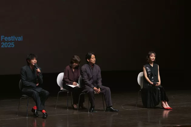 世界からの注目度も高いNetflix日本作品の最新作とあって、映画祭のメイン会場になる「ハヌルヨンシアター」には幅広い世代の観客が来場。第1話&第2話の上映が終了すると同時に、会場全体から大きな拍手が沸き起こり、その拍手に包まれながらステージに登壇した。
