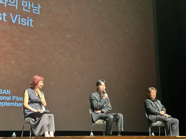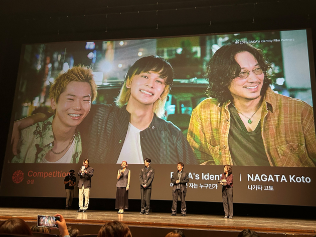 9月17日(水)に開幕した第30回釜山国際映画祭の<メインコンペティション部門>に選出され、オープニングのレッドカーペットを歩いた『愚か者の身分』。翌9月18日(木)には、映画祭のメイン会場≪Busan Cinema Center Haneulyeon Theater≫でワールドプレミアが行われ、キャストの林裕太、永田琴監督、森井輝プロデューサーが登壇した。