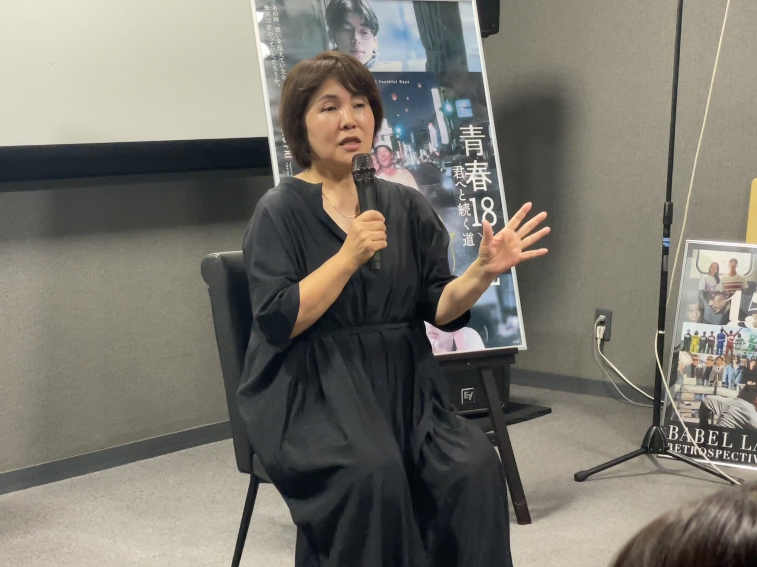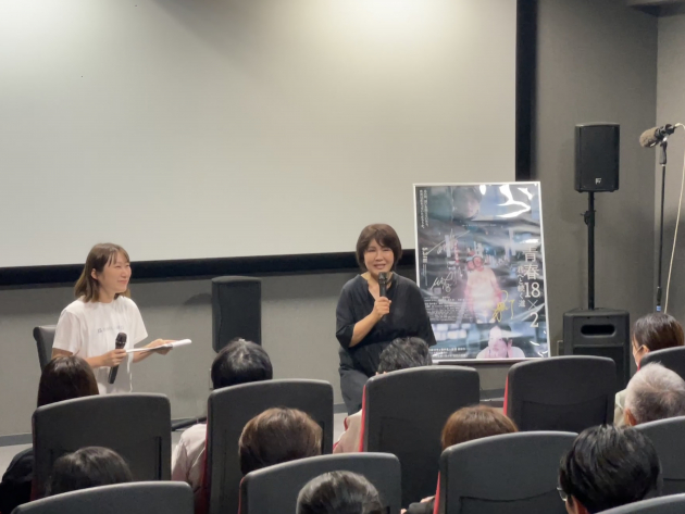 鹿児島市中心部の繁華街、天文館エリアに位置する商業施設「マルヤガーデンズ」には、今日も多くの買い物客で活気に溢れていた。そんな商業施設の中にあるコミュニティシネマ「ガーデンズシネマ」にも、この映画館がテーマとして掲げている“映画の感動で人と人をつなぐ”という言葉を体現するかのように、新たな映画との出会いや、映画館で同じ時を過ごすという目には見えないが、この瞬間でしか叶わない出会いを求める人々で賑わっていた。そんな、「ガーデンズシネマ」で、10/4(土)より“BABEL LABEL全国ミニシアターキャラバン”がスタート、劇場の入り口には大きく「15 周年」と書かれた装飾が施されており、ガーデンズシネマと BABEL LABEL の 15 周年を記念すべき日になるような温かく華やいだ空気感を背に、多くの観客で賑わっていた。 そんな、いつもとは違った賑わいを見せる劇場で、10/5(日)BABEL LABEL所属プロデューサー:前田浩子が登壇する『青春18×2 君へと続く道』の上映後舞台挨拶がスタートした。