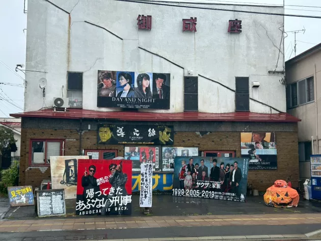 秋田県大館市御成町は、あの“忠犬ハチ公”の生まれ故郷として知られており、大館駅周辺にも、忠犬ハチ公像や、秋田犬にまつわる展示をする施設も存在する。そんな、駅前を少し歩くと、様々な映画のポスターが窓一面に貼られ、何より、圧倒的な存在感を放つ、手書きの絵看板が目を惹く映画館「御成座」が建っている。東北地方で唯一となる一戸建ての映画館で、昔ながらのレトロで温かい雰囲気が人気、地元の人々や、映画ファンに支えられながら文化的な拠点として親しまれている。