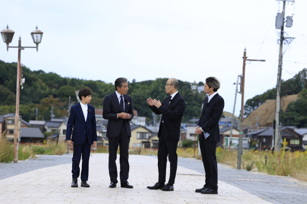 挨拶後からは記者との取材会が実施。まず一人目の記者から「再訪されて感じたこと、震災後の朝市通りを目にした時の心情」について問われると、舘は「当時(撮影で見た)朝市通りの記憶と今の状態がまったく違っていたので、大変ショックを受けました」と複雑な思いを吐露。「本当に何もなくなってしまったんだな、と。道路を歩いてみても隆起していたり、改めて大変な地震だったんだなと心から感じました」と率直な感想を口にする。昨日から輪島に訪れていたという眞栄田は、「想像していた以上にまだまだ復興途中なんだなと身に沁みて実感しました。ですが、接していただく街の方々は、前向きで明るくて。逆に力をいただいたなという印象です」と地元の方の温かさを伝えていた。そして尾上は輪島に降り立った時からその景色に驚いていたそうで、「空港から(ここまで)来る道もデコボコしていたり、降りてみた時も“ここだっけ?”と思いました。こんなに(撮影の時に目にしていた建物が)なくなっているんだなと、すごく驚きました」と感想を明かしていた。