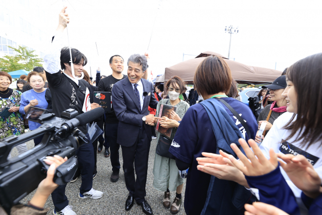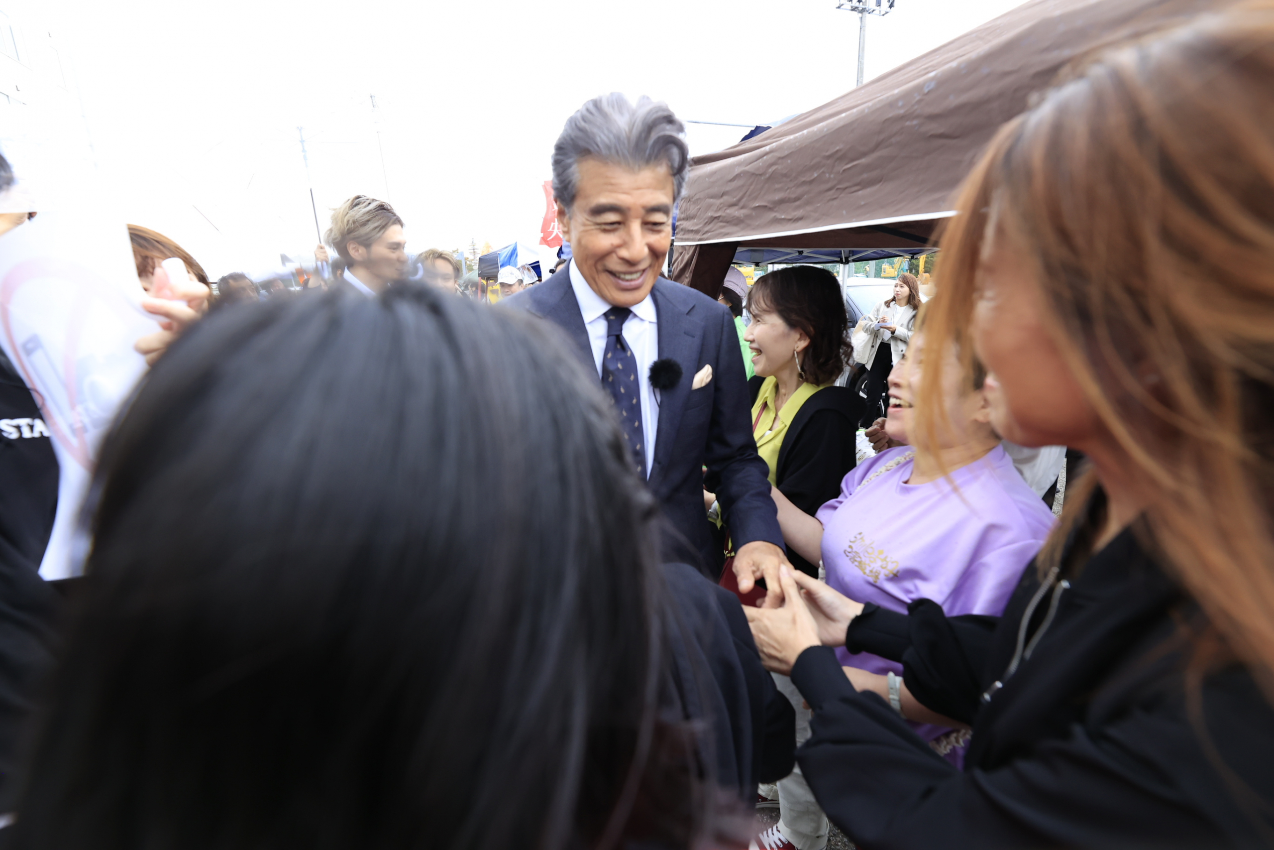 舘ら3人は会場内を歩きながら、出店者や来場者と笑顔で言葉を交わし、握手や手振りなどで応じていた。地元住民や学生から「頑張ってください!」と声がかかると、舘は「ありがとう」と笑顔で応え、眞栄田と尾上も柔らかく手を振る姿を見せた。舘は屋台で商品を手に取りながらスタッフに声をかけ、尾上は子どもたちとの交流を楽しむなど、終始あたたかい空気に包まれた。