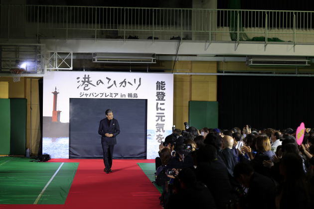 10月18日、映画の舞台となった石川県輪島市で「ジャパンプレミア in 輪島 〜能登に元気を〜」が開催された。第三部では、舘ひろし、眞栄田郷敦、尾上眞秀、黒島結菜、斎藤工、笹野高史ら豪華キャストと藤井道人監督が登壇する舞台挨拶が実施!舞台挨拶の会場には、本作を心待ちにする700名近い来場者が詰めかけた。キャスト陣の登場を今か今かと心待ちにする一般客の熱気が漂う中、ついに舘をはじめとする豪華キャスト&監督が登場!キャスト陣が客席からの拍手や声援に笑顔で応えながら、レッドカーペットを闊歩した。そして一言ずつ挨拶をすると、イベントはスタート。