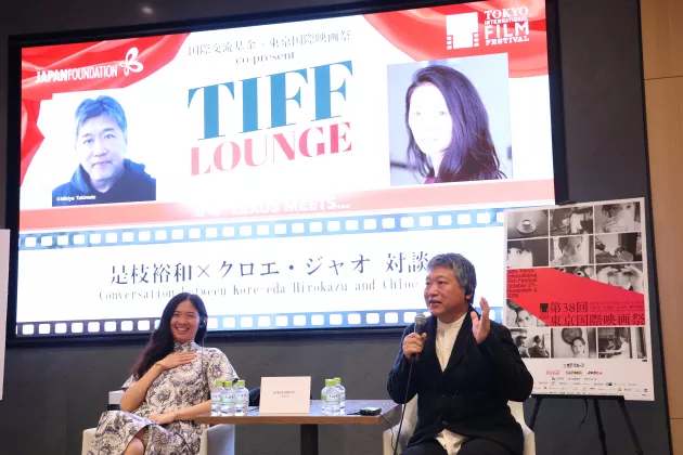 第38回東京国際映画祭と国際交流基金の共催企画「交流ラウンジ」が11月2日、東京ミッドタウン日比谷・LEXUS MEETSで開催された。是枝裕和とクロエ・ジャオが登壇し、互いの作品体験と制作プロセスについて率直に語り合った。