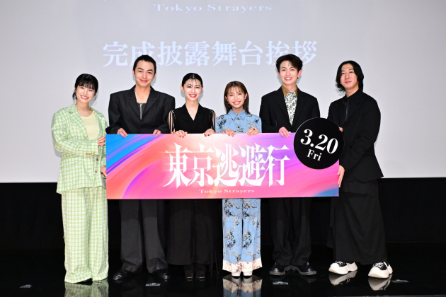 BABEL LABEL制作、秋葉恋監督の長編デビュー作『東京逃避行』の完成披露舞台挨拶が3月5日、東京・テアトル新宿で開催され、寺本莉緒、池田朱那、綱啓永、高橋侃、さとうほなみ、そして秋葉恋監督が登壇した。
