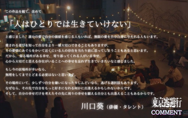 『東京逃避行』は、単なる逃走劇ではなく、「孤独」や「居場所の不在」、そして都市の片隅で透明化されていく若者たちの叫びを描く一作。秋葉恋という若い監督の視点が、歌舞伎町という街のきらびやかさと残酷さ、その両方を捉えながら、4人の若者たちの一夜を通して現代社会の断面を浮かび上がらせる。