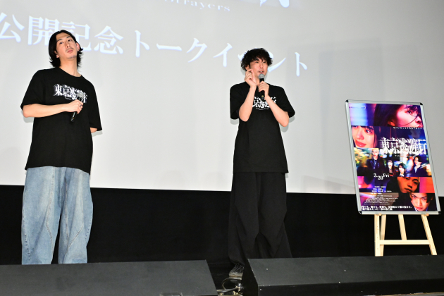 『正体』『イクサガミ』で知られる藤井道人監督がプロデュースした、話題の映画『東京逃避行』。3月24日にはテアトル新宿にて秋葉恋監督と藤井道人がトークイベントを実施した。先週3月20日に公開された本作は、興行通信社が発表するミニシアターランキング(3月20日~3月22日)において邦画第1位を記録する好発進。本作で長編映画監督デビューを果たした秋葉監督は「皆様の素晴らしいお力のお陰でこのような結果が生まれたと思います。この先もさらに広がって行くように僕も精進していきたいです」と挨拶した。