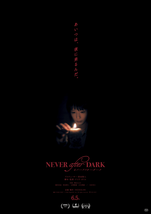 6月5日(金)に公開を迎える映画『Never After Dark/ネバーアフターダーク』は、米国最大級のカルチャーの祭典「第33回サウス・バイ・サウスウエスト(SXSW)2026」でミッドナイター部門へ正式出品され、見事「観客賞」を受賞。さらに、ベルギーで開催された「第44回ブリュッセル・ファンタスティック国際映画祭」コンペティション部門や、ニューオリンズで開催された「第10回オーバールック映画祭」コンペティション部門にも出品されるなど、今世界中から注目が集まっている。本作は、俳優・賀来賢人がプロデューサーを務め、Netflixシリーズ「忍びの家 House of Ninjas」(24)でタッグを組んだデイヴ・ボイル監督と共に立ち上げた映像製作会社「SIGNAL181」による初の劇場作品である。従来のジャパニーズホラーの枠に捉われない世界基準の映像美を追求し、アメリカから撮影監督を招くなど、細部にまでこだわり抜かれた本作の制作秘話に迫る。