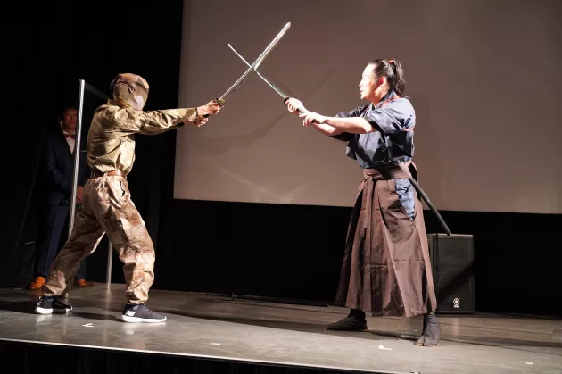 舞台上で剣術指南!?映画『狂武蔵』完成披露無観客イベント実施!