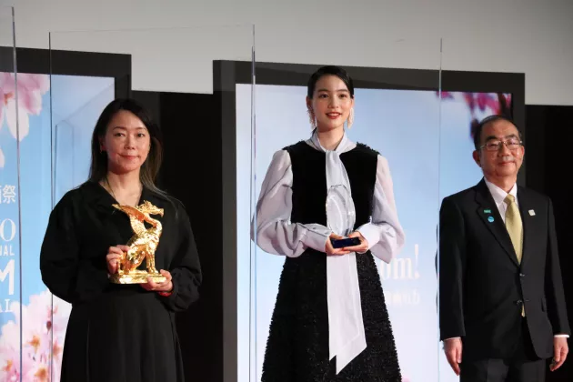 大九監督は「本日はこのような素晴らしい賞を頂戴しまして、ありがとうございます。3年前に受賞した時と、世界は変わってしまいまして、この映画祭も全く違う形となりました。色んな映画祭がリモートや配信で行う中、東京国際映画祭は実際にお客さんを映画館に入れて、同じ場所で同じ時間で、映画を大きなスクリーンで一緒に見るということを実現させたことは本当に素晴らしいと思います。まだまだ出歩くことに対して安心がない中で、この映画のチケットを買って頂いて、映画を観て頂いて、かつ点数を入れてくださった、お一人お一人の貴重な一票が私たちにこの賞をくださったと、いつも以上に感じています。早く一人一人のお客様と直接握手したり話すことができる日が来るといいなと思います」とコメントした。