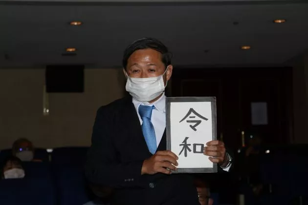 ここでトークセッションはタイムアップ。最後の写真撮影に移ろうとしていたところで杉田プロデューサーから「ステージから逆光で見えづらいんですが、会場に菅さんが来てるんじゃないですか?」とポツリ。会場を見渡すと、客席の中に令和の額を持った菅総理の姿が!