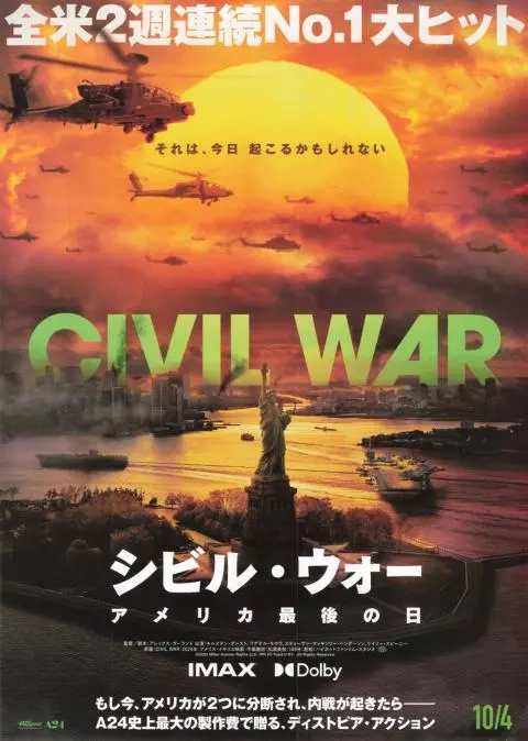 - ★【#観客動員ランキング 】『シビル・ウォー アメリカ最後の日』3日間で動員12万7000人、興収1億9800万円をあげ初登場1位に輝く!その他、新作は『鬼太郎誕生 ゲゲゲの謎 真生版』『JUNG KOOK: I AM STILL』『ふれる。』がランクイン!