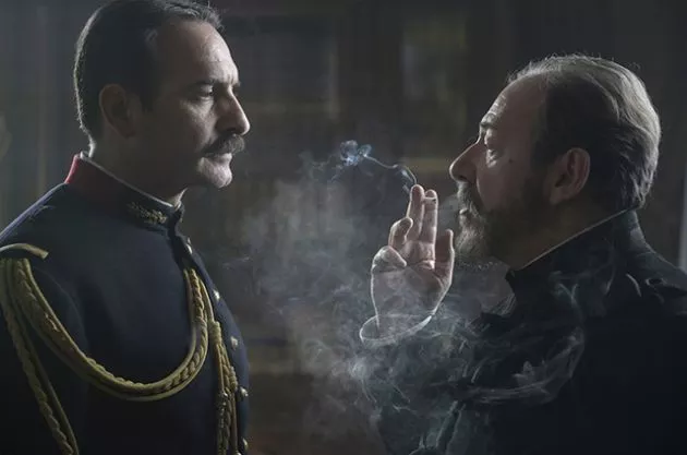 ピカールを演じるのは、今時珍しいサイレント映画『アーティスト』の主役を務め、カンヌ国際映画祭をはじめ数々の賞に輝いたジャン・デュジャルダン。ほとんど喋らない役から“声を上げる”役への変化もそうだが、ピカールがスキャンダルを暴く立場でありながら自身も人妻と不倫しているというスキャンダルを抱えた一筋縄ではいかないキャラクター造形も面白い。また、本作の原題『J’accuse(私は弾劾する)』は、文豪エミール・ゾラがドレフュス擁護のために書き上げた公開状のタイトルと同じだが、ポランスキーは過去、未成年への性的虐待で弾劾された側の人物でもある。ピカールの愛人を演じているのはポランスキーの実際の妻エマニュエル・セニエで、ピカールに自分を重ねているようにしか思えない。