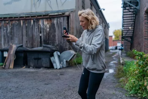 ナオミ・ワッツ演じる主人公エイミーは1年前に事故で夫を亡くし、そのせいで引きこもりになった息子ノアとぎくしゃくしてしまっている。エイミー自身もまた夫の死から立ち直れておらず、心の平穏を求めてジョギングで気を紛らわせる毎日だ。ある朝、いつものように部屋から出てこないノアに話しかけた後に近くの森までジョギングに出ると、スマホから警報が鳴り響く。ノアの通う学校で銃を持った犯人が立てこもり事件を起こしたのだ。知り合いに連絡をとると、学校にノアのトラックが止まっていることが判明。しかしエイミーはすでに家から遠く離れ、使える物はスマホしかない。果たしてノアは学校にいるのか、エイミーはスマホひとつでノアを救えるのか、という緊迫感のあるシチュエーションに観客も一緒に放り込まれる。主人公は救われる側でなく、救う側なのだ。