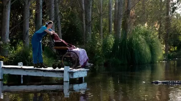 本作の舞台は第一次世界大戦中、1918年のアメリカ・テキサス州だ。主人公パールは映画の中のダンサーに憧れているが、田舎の農場から出ていくことができない。全身不随の父親を世話しなければならず、母親の厳格なルールに従わなければならず、アメリカの敵国であるドイツ系の血を引いているため人目を避けなければならず、スペイン風邪のパンデミックのため人通りの多い場所にも行けないのだ(まるでコロナ禍)。結婚はしているが夫のハワードは出征し、生きているのか死んでいるのかも分からない。友だちと呼べるのは、家畜と近くの池に住むワニのセダ(実在の当時の人気女優、セダ・バラにちなむ)のみ。そんな中、スターとしてデビューするチャンスであるオーディションが開催されるが…。