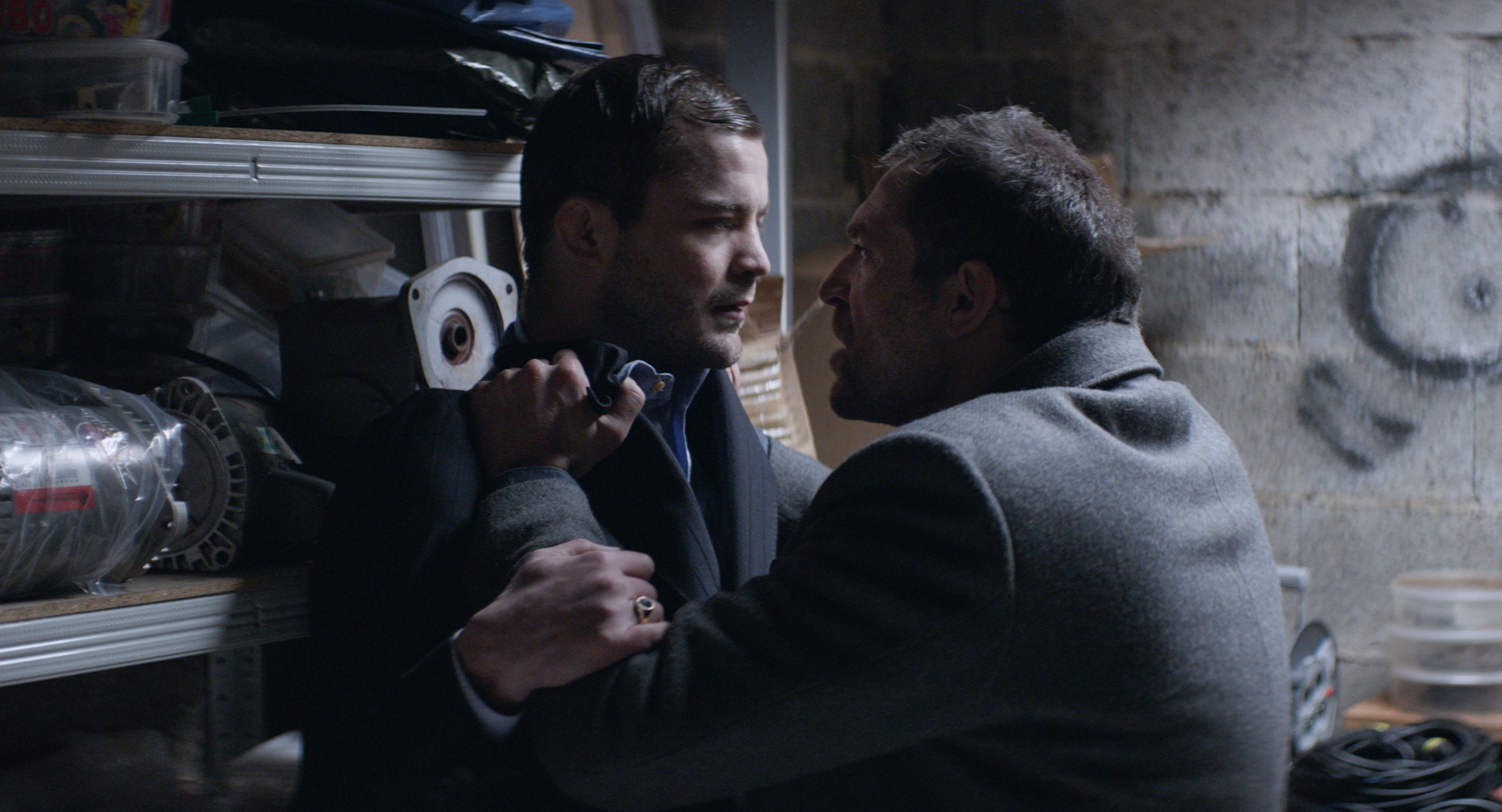 あらすじや、ノワールといった触れ込みから、不在の父親にはとんでもない裏稼業でもあったのかと思えば、どうやらそうではない。父親はハンターで、動物を狩るのが趣味だった。そして地下にある閉塞感たっぷりのサターン・ボウリングには、アルマンが毛嫌いするハンター仲間の老人たちが連日たむろしている。老人たちは男の嫌らしさを煮詰めたような連中で、父親はまさにキングピン(周りを囲まれた5番ピン、またはギャングのボス)扱いだ。公式のあらすじだとギヨームの方が主人公のように思えるが、前半ではカメラはアルマンを追いかける。アルマンは気弱そうで、無害……いや、もっと言うと無力な男性に見える。しかし、父親と同じ名を持つ彼は、父親の部屋で暮らし、父親の物に囲まれて、父親の服を身にまとうことで虎の威を借り、徐々に同一化していく。