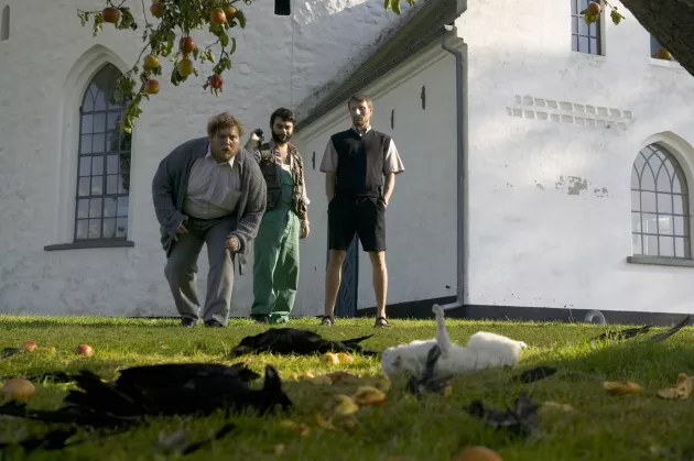 だがブラックコメディというジャンルは、時に大人の階段を一歩上った我々映画ファンを嘲笑う。ブラックコメディに慣れたファンは、常識的にはギャグと思えないボケを察知する超能力を会得しているのだが、世の中にはそれをもってしても笑いどころが分からない、ブラックペッパーを缶丸ごとぶちまけたような上級者向けのブラックコメディ映画が存在するのだ。今回紹介するデンマーク・ドイツ映画『アダムズ・アップル』がまさにそういった作品だった。本作は新作ではなく2005年の作品で、2019年には日本初公開されているが、今年は本作に出演している“北欧の至宝”なる二つ名を持つデンマークの名優マッツ・ミケルセンの生誕60周年。レア作品も含めて彼の出演作が多数公開されることになっており、本作はその中の1本というわけだ。