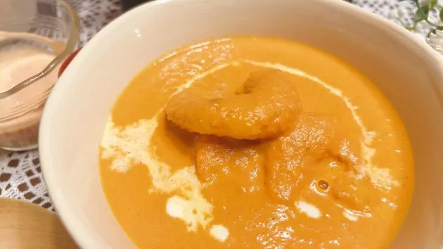 ビスクスープはエビの頭が入っていないので、香りがしないのではないかと心配していましたが、ちゃんと香ってます!やや薄いけど!(笑)