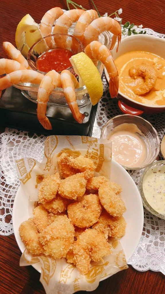 映画の中に「エビはどんな料理にしてもう旨い」という会話があったので今日は色んな調理法でいただきます。エビのビスクスープとカクテル・シュリンプ、そしてポップコーンシュリンプ!