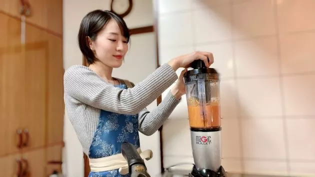 少し冷ましてからミキサーにかけ、ザルで濾します。