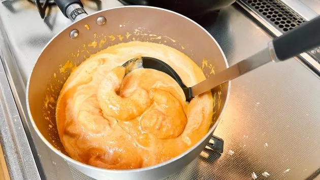 さっぱりしたカクテルシュリンプと同じエビ料理とは思えないほど、クリーミーな味になりました。