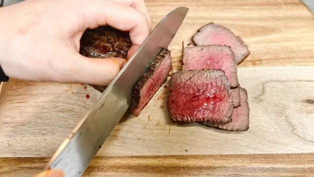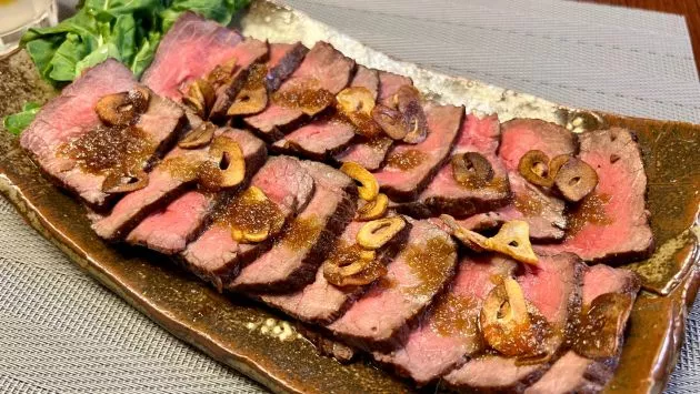 お肉が冷えたら薄く切りお皿に盛り付けて完成です!
