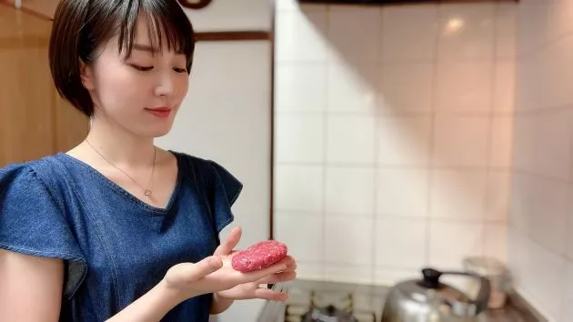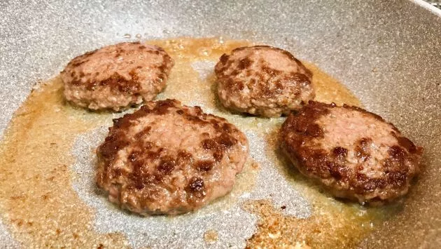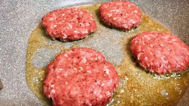 焼くと縮むのでバンズより一回り大きく成型してフライパンで焼いてきます。